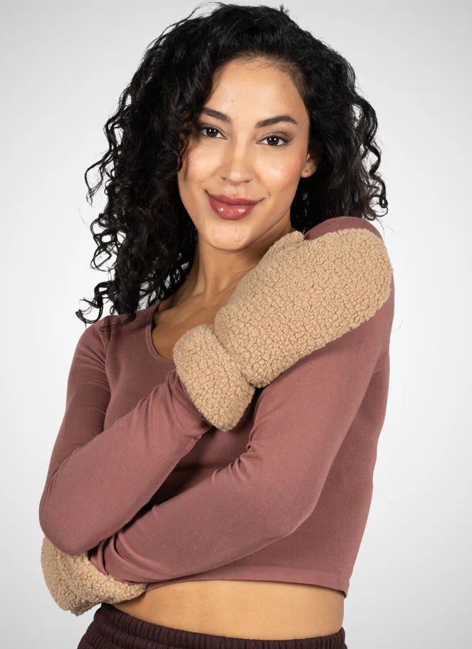 A shearling style mitten with a super soft plush interior.