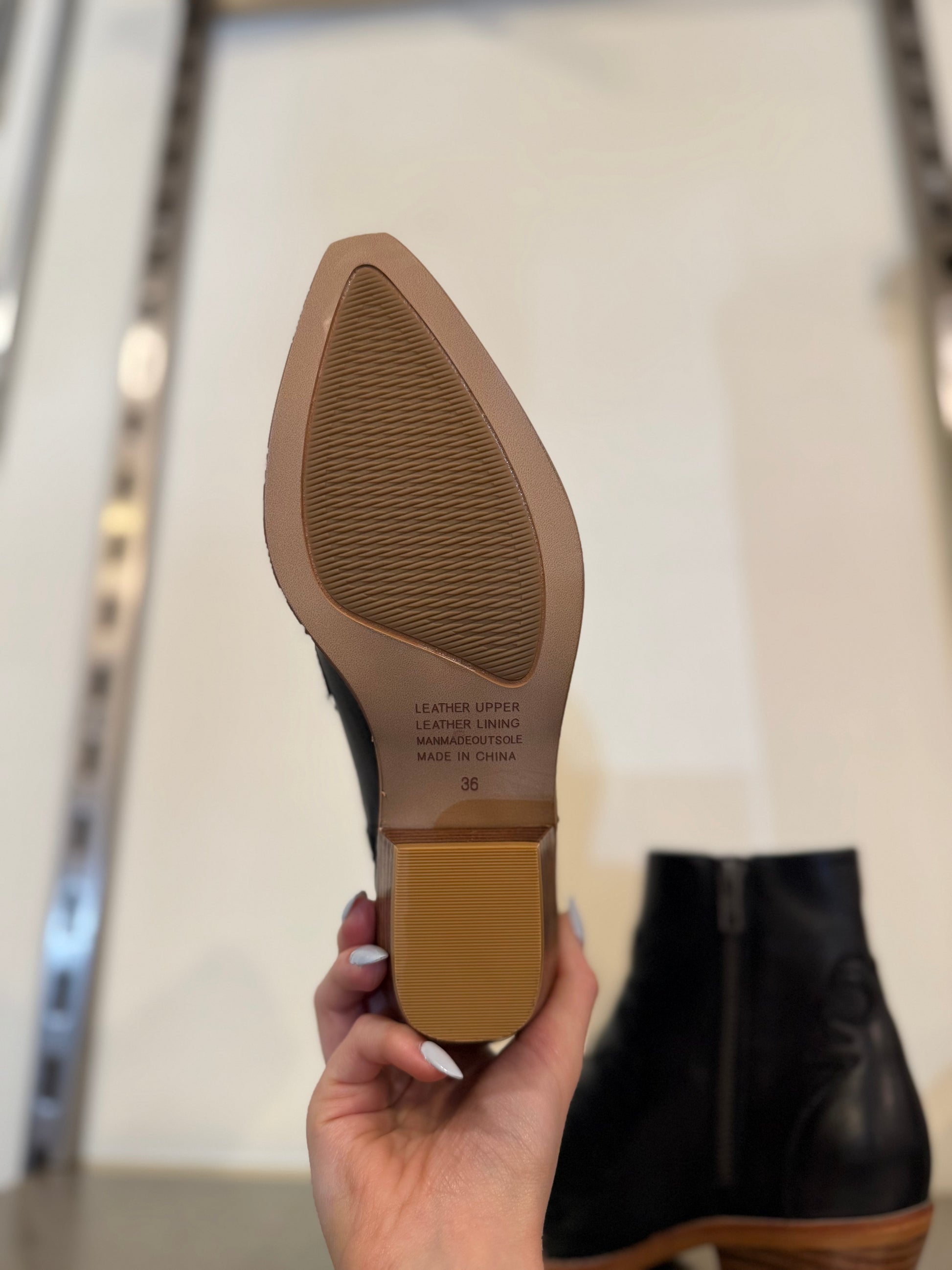 Soft leather with side zips, this western inspired bootie will take you from Festival to Friday night date night!
