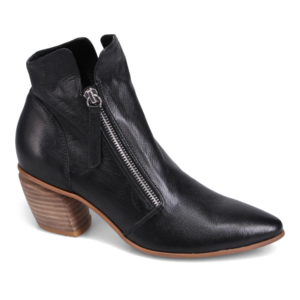 Featuring a feminine silhouette sculpted to the contours of your ankles, Jazzy by Django & Juliette is a modern classic you can style for any daytime occasion. Resting on a sloped stacked heel, the softly pointed design features a stylish twin zip fastening that adds a contemporary touch.
