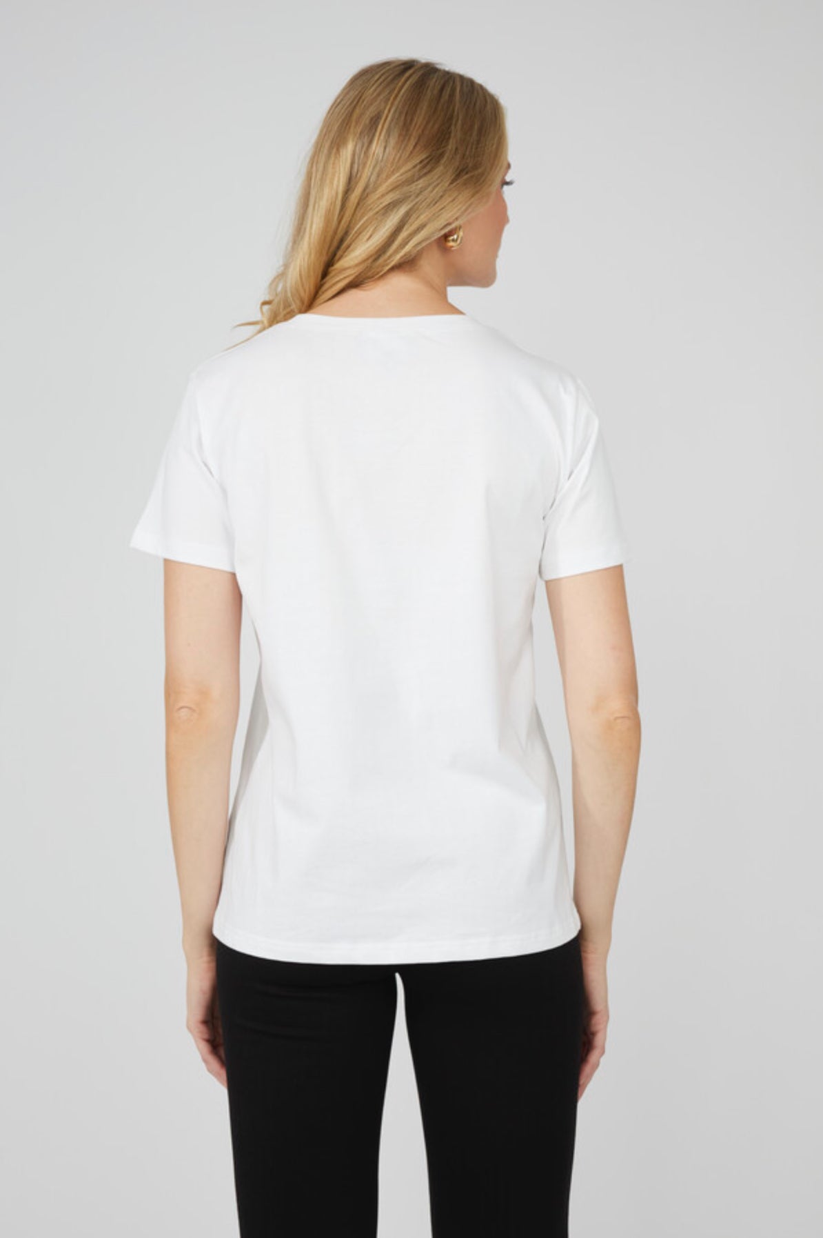 Introducing a must-have piece from Frank Lyman: this pullover-style top with a regular fit offers both comfort and style. Adorned with jewel embellishments and a charming heart print, it features a crew neck and short, straight sleeves. Perfect for casual summer outings, its hip-length design effortlessly combines a casual and feminine aesthetic, making it a versatile addition to your wardrobe.