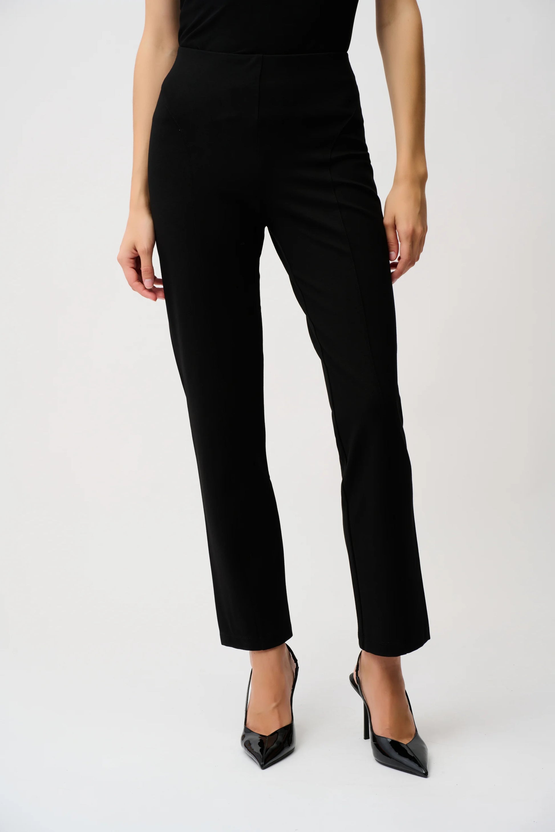 These classic slim fit pants are crafted from a heavy knit fabric that drapes beautifully, smoothing over imperfections while providing a flattering fit. A versatile must-have for any wardrobe, these pull-on style pants can be paired with almost any top, making them an ideal choice for cooler seasons.