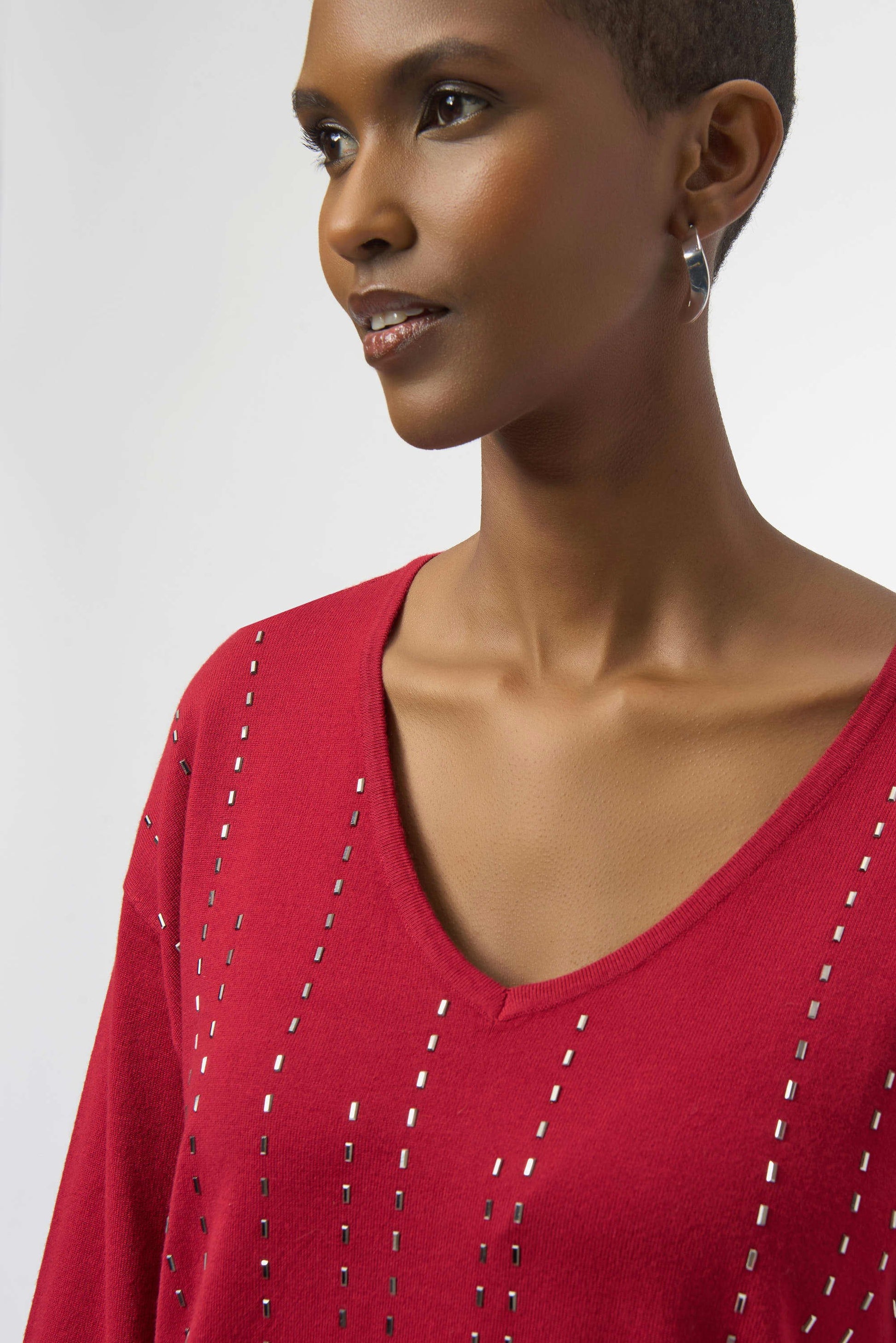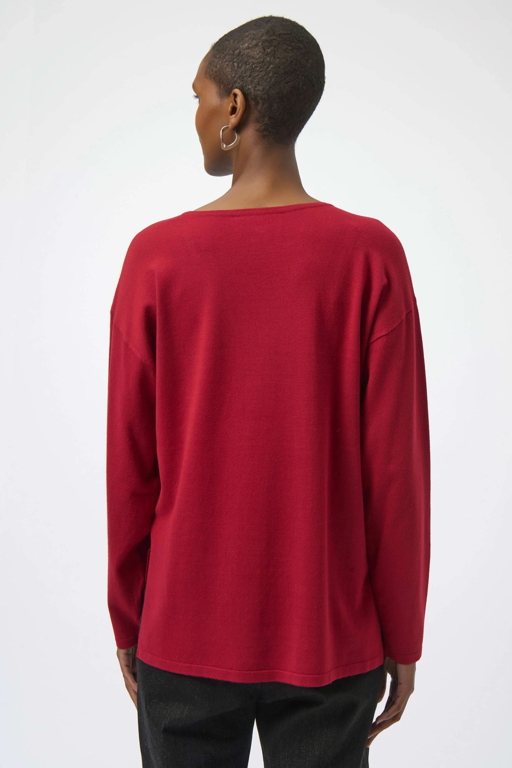 Joseph Ribkoff Sweater Knit Pullover with Iron-On Detail Deep Cherry 254966