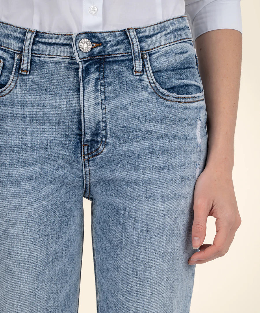 These high-rise mom jeans with a regular hem and Fab Ab pockets offer a relaxed yet comfortable silhouette, making them a must-have for a laid-back, effortlessly chic look.