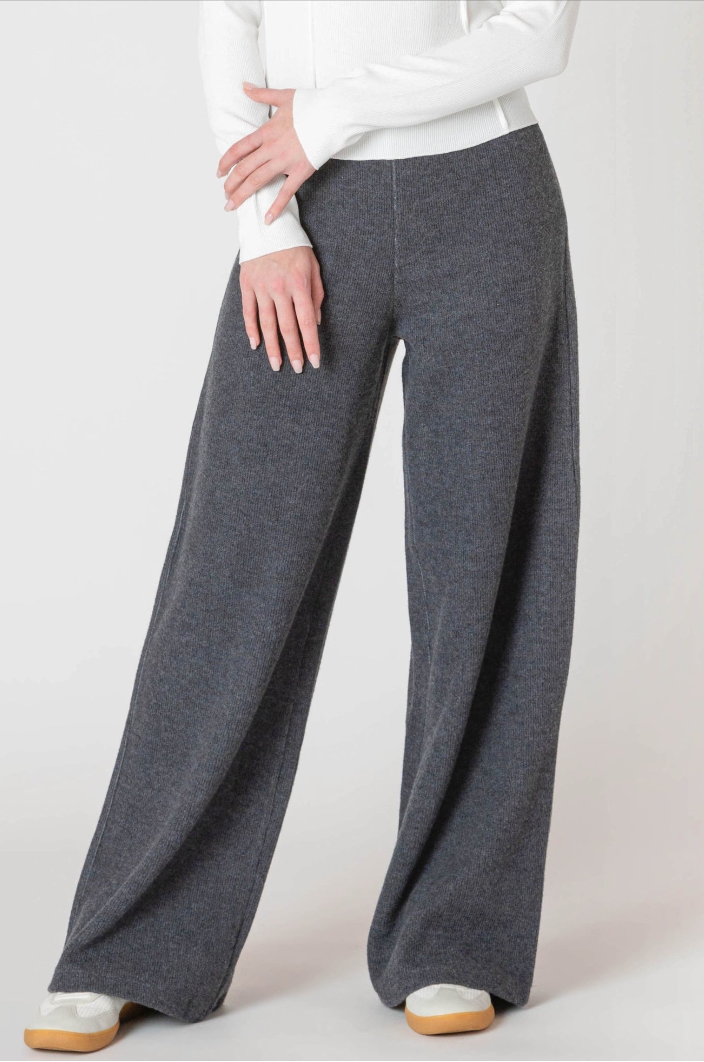 Room 34 Wide Leg Ribbed Pant Charcoal Heather