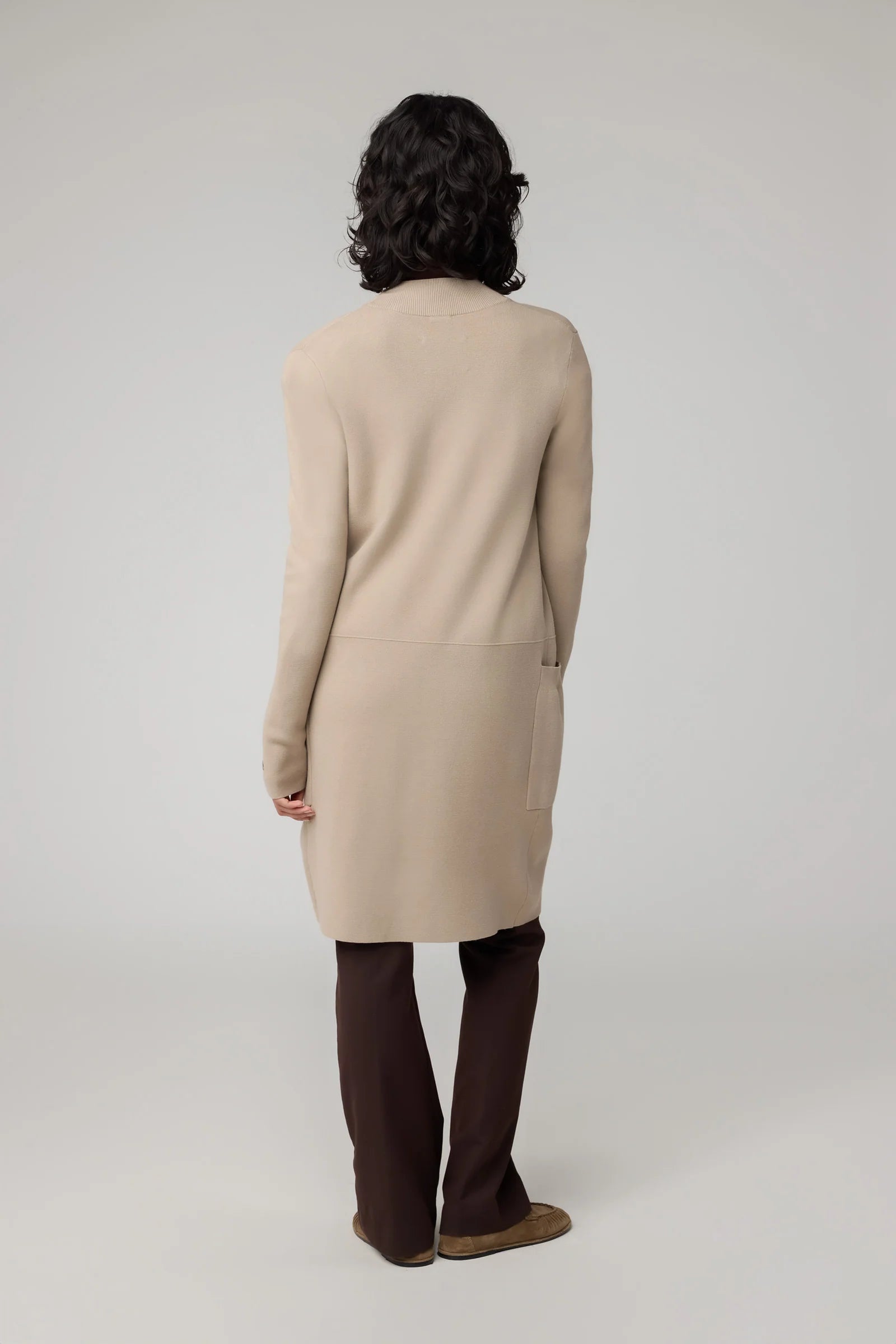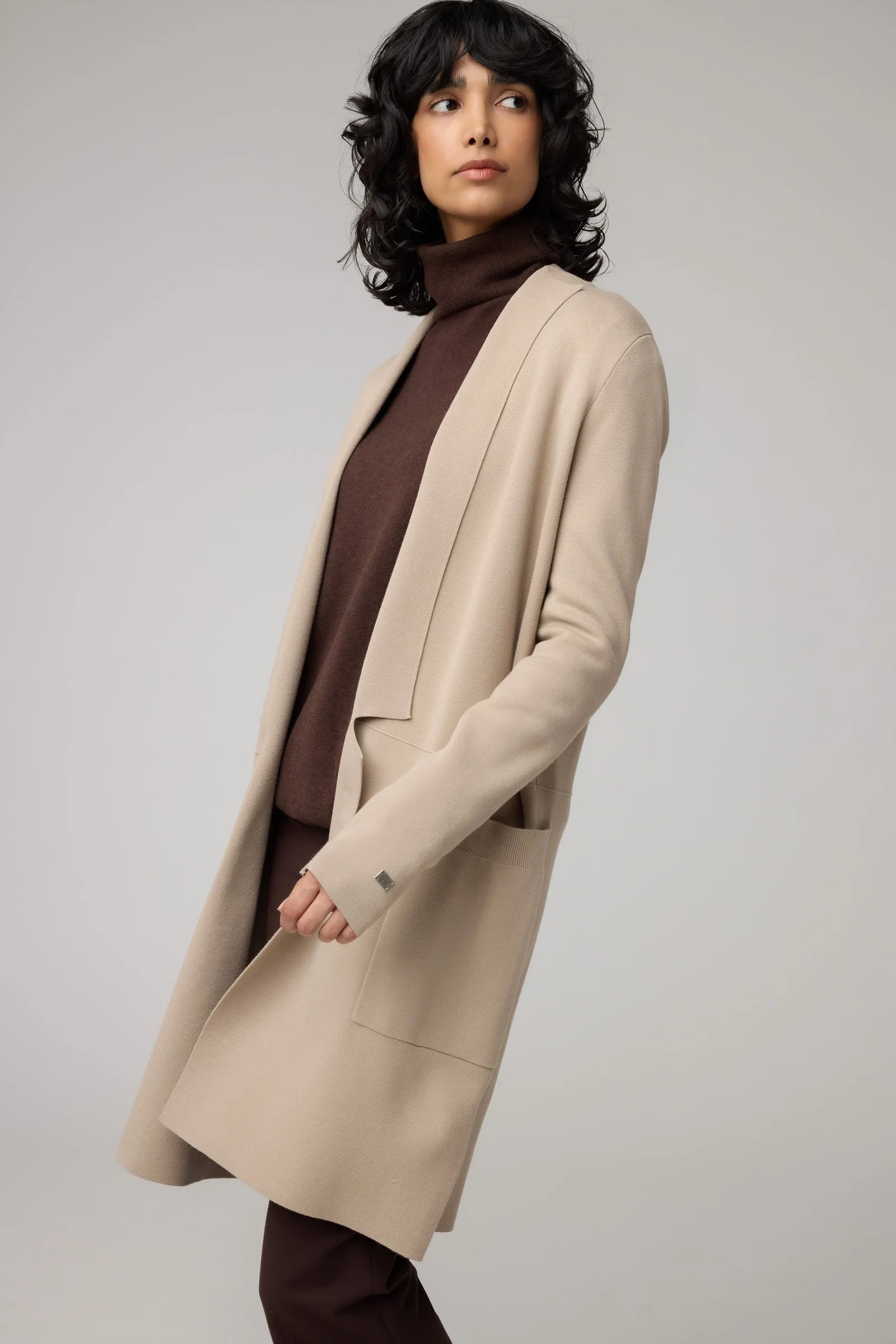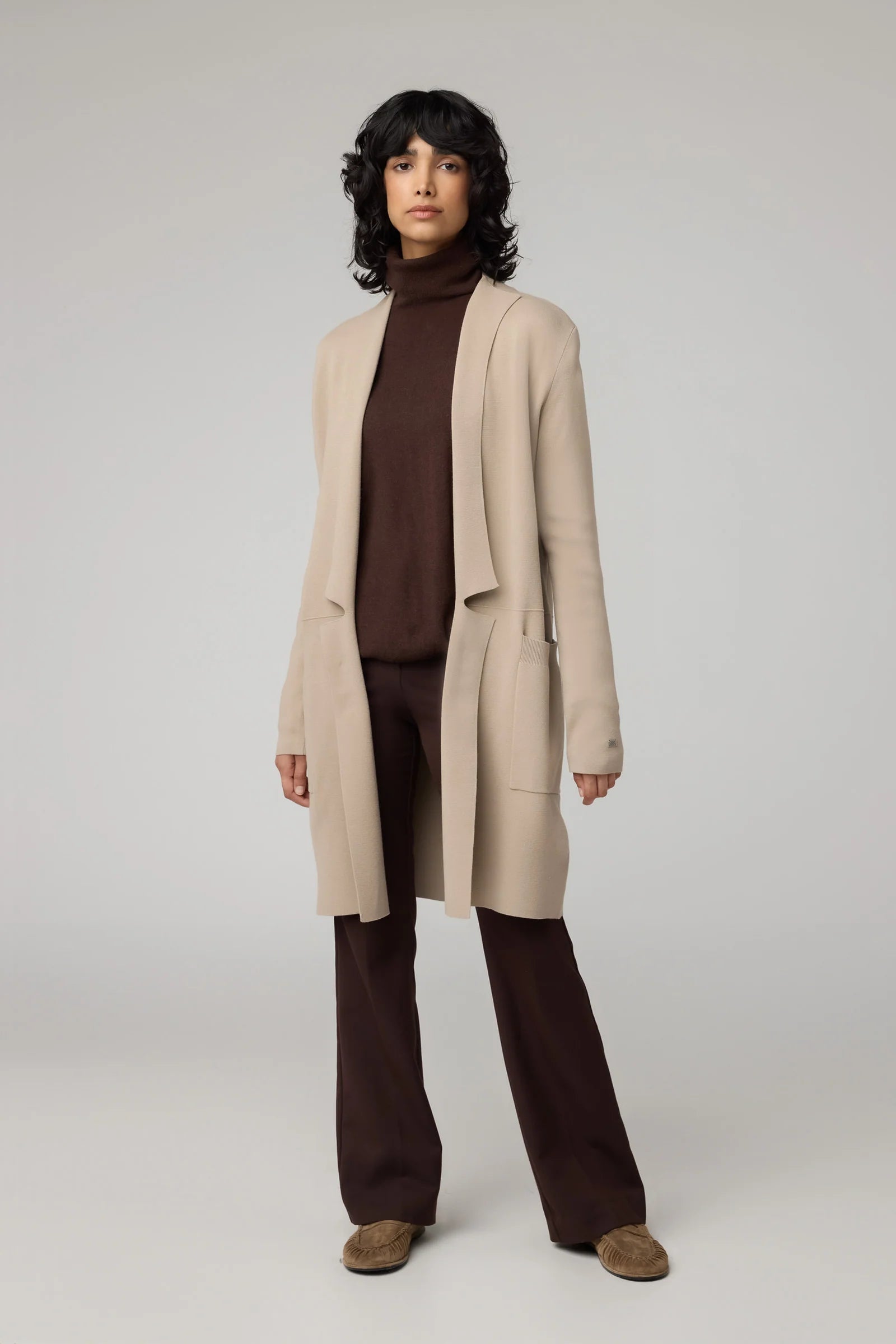 The BENELA by SOIA & KYO is a fashion-forward luxe coatigan with lapels and a ribbed back stand collar. It’s made with Lenzing™ Ecovero™ Viscose fibers derived from sustainable wood and pulp. Wear it indoors or outdoors.