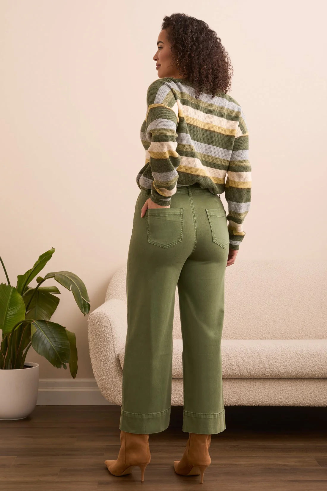 Tribal Stretch High Rise Palazzo Pants Chive