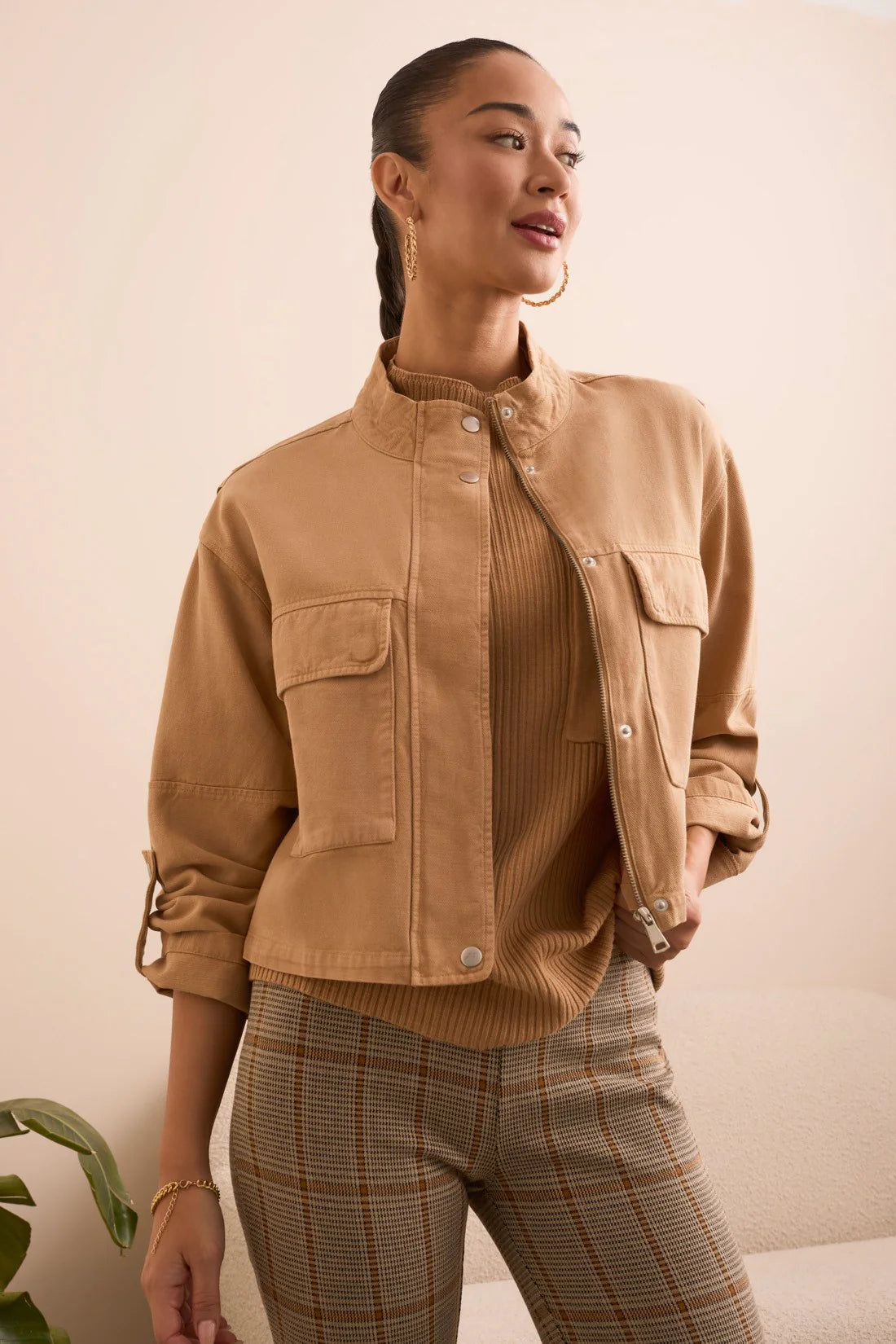Complete your look with this refined jacket, featuring a distinguished collar and sturdy double flap pockets. The hidden zipper adds a modern touch, offering a clean and polished finish. Crafted from soft, breathable twill fabric, it ensures comfort and style from morning to evening.